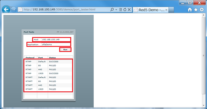 これを使うと、Red5サーバが使用しているプロトコル名・ポート番号・プロトコルの状態を確認して表示してくれます。