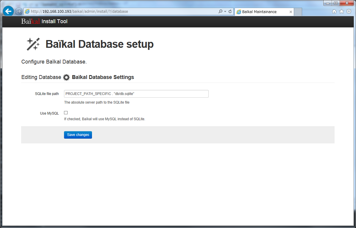 | MySQL password | 「baikal」を入力 |