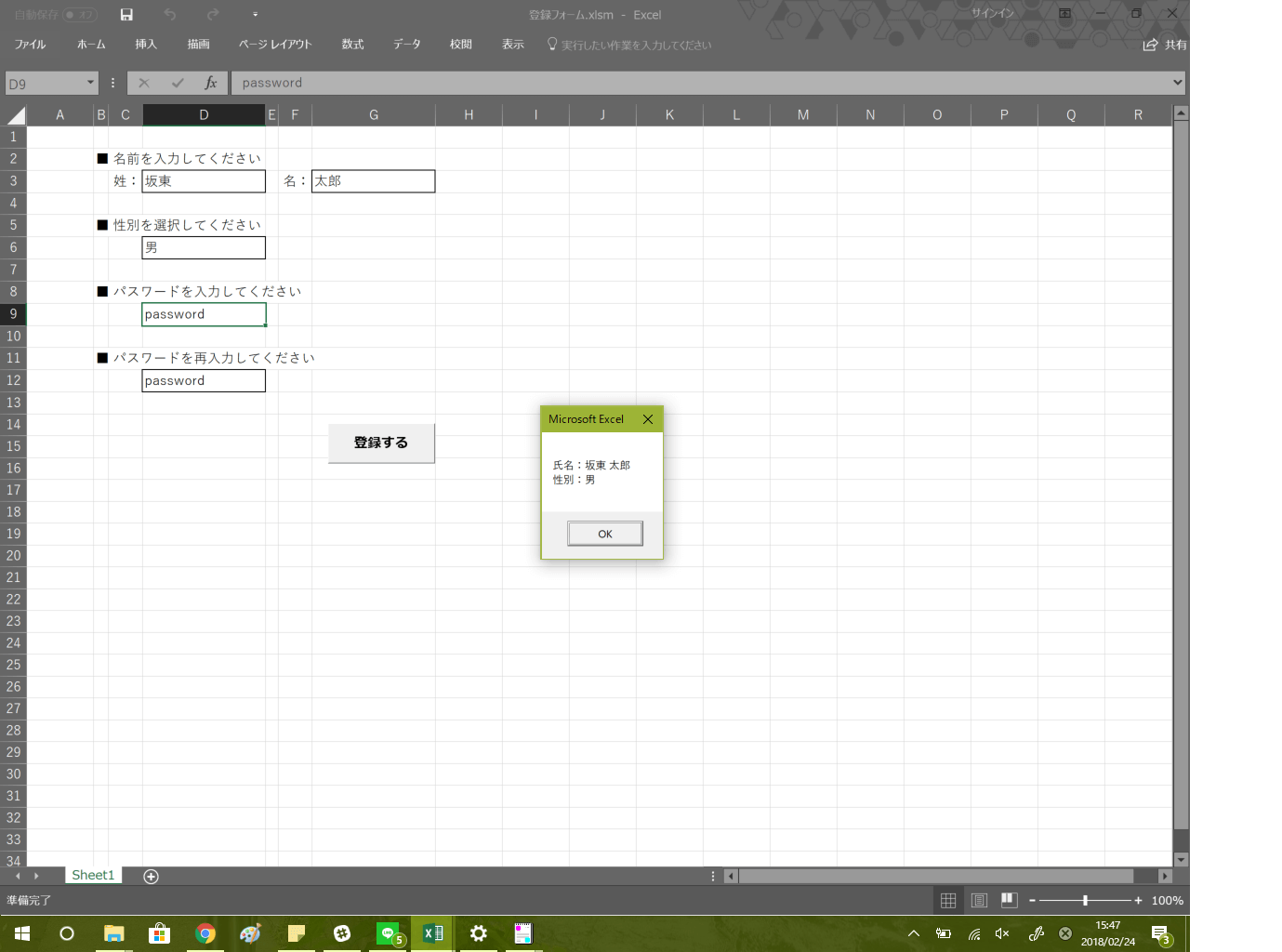 MsgBox "氏名:" & lname & " " & fname & vbCrLf & "性別:" & mf